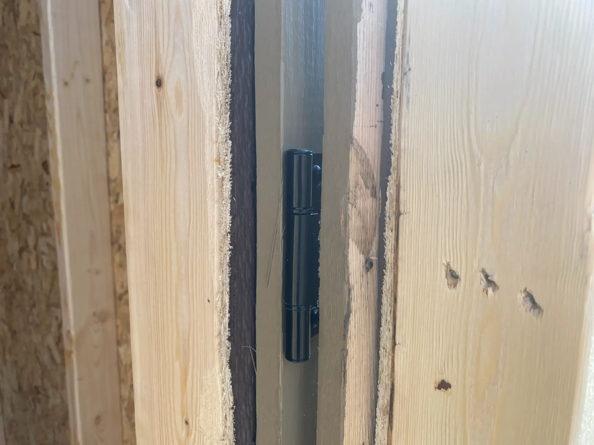 You also want solid backing behind the hinge side. Many DIY builds fasten hinges into trim boards or thin siding layers, which feels fine for a week and then gradually loosens. The door’s weight transfers into the frame every time it swings. If the hinge screws are not biting into structural lumber, you will see sag and shifting. A properly framed opening gives hinges something solid to hold. It also keeps the door opening from racking over time. When the opening stays stiff, the door stays happier.